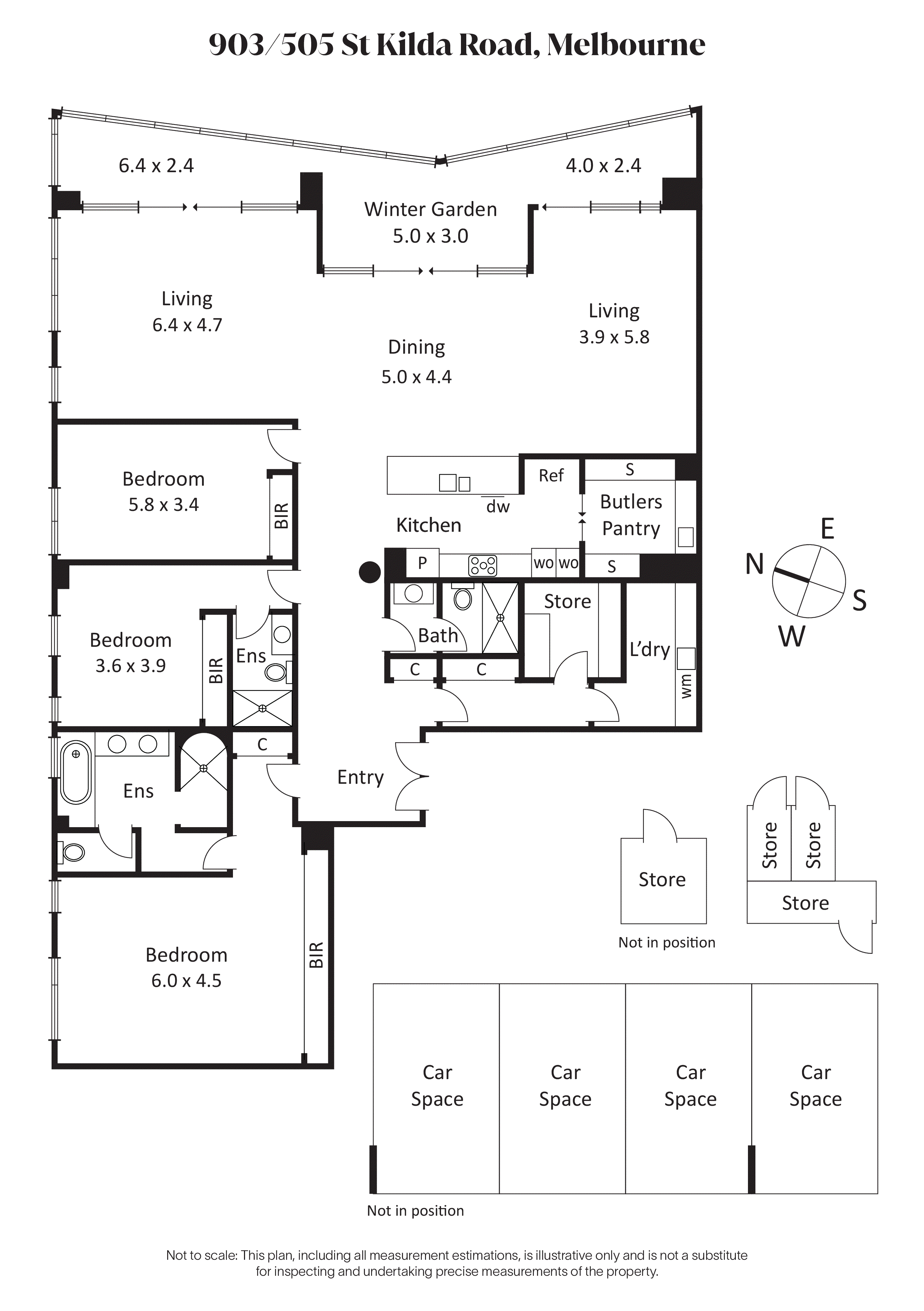 Beyond a dedicated entry foyer, high ceilings and timber floors lead the way to a series of lavish living, dining and entertaining spaces that expand out against immersive views over Fawkner Park’s 101 acres of leafy parkland to the CBD, Government House, South Yarra skyline, the rooftops of the inner east, and the Dandenong Ranges. A sophisticated gourmet kitchen featuring stone benchtops, Gaggenau cooking appliances, including two wall ovens, Bosch dishwasher and butler’s pantry, overlooks the three interconnected living zones and a full-width entertaining terrace/winter garden where clever auto louvres allow any weather enjoyment. In its own zone, the palatial main bedroom suite features extensive built-in robes/storage, and a sumptuous marble ensuite that includes a lavish full-size bath, oversized walk-in shower and double vanity. Two additional bedrooms, both of generous proportions, enjoy deluxe built-in robes/storage, one with ensuite, the other served by a central bathroom. A separate utility wing features extensive built-in storage, a separate fitted storeroom with space for additional fridge or freezer, and a dedicated laundry with raised appliance plinth. Freshly painted throughout, further highlights include ducted heating/cooling, new timber floors and pure wool carpet, premium blinds, intercom security and a private “end of hall” position.