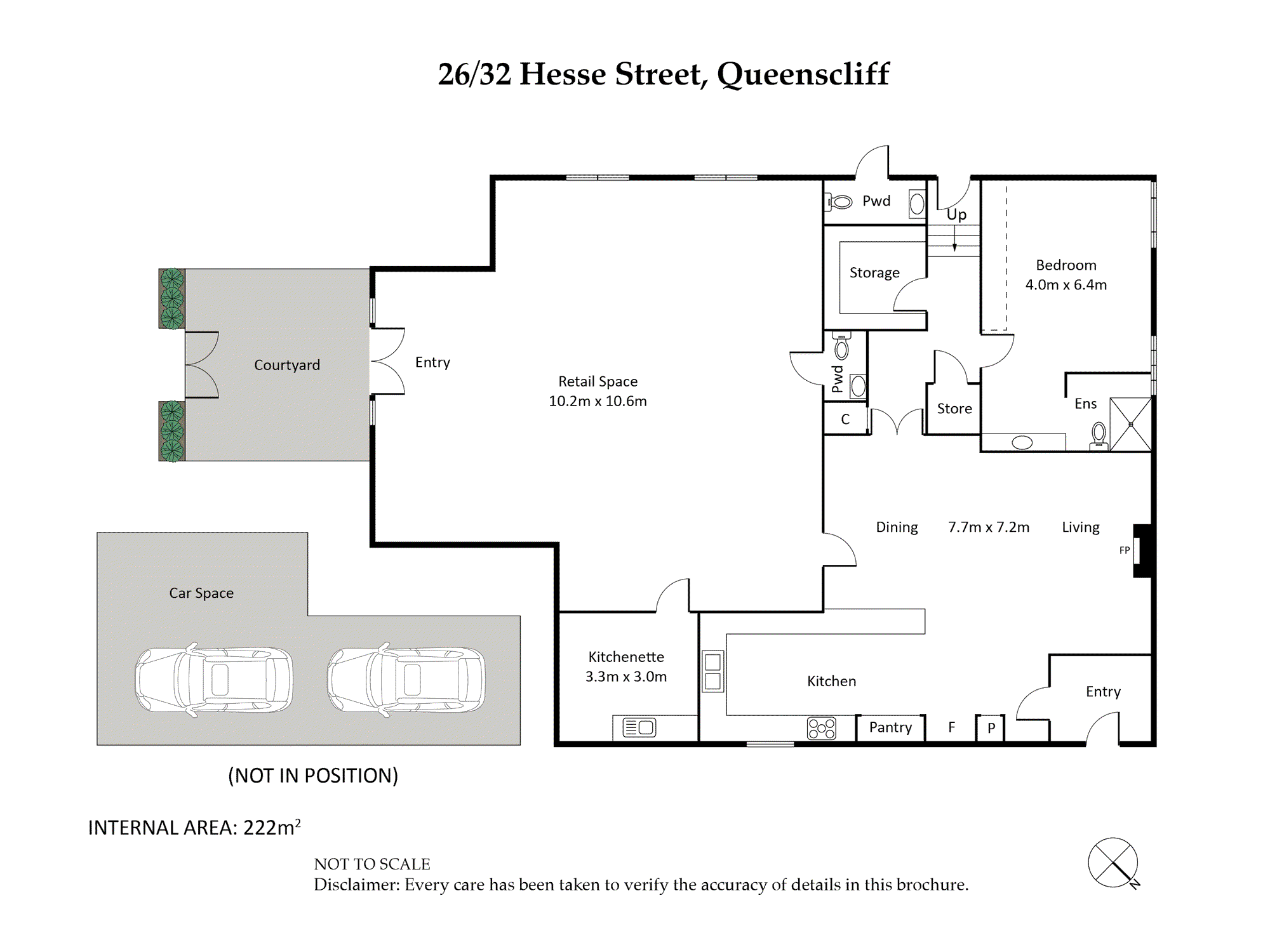Benefitting from a first-class position that’s privy to a constant stream of foot traffic, the 222sqm (approx.) commercial space welcomes with a gated courtyard entry and includes a kitchenette/office and sensor-lit powder room.