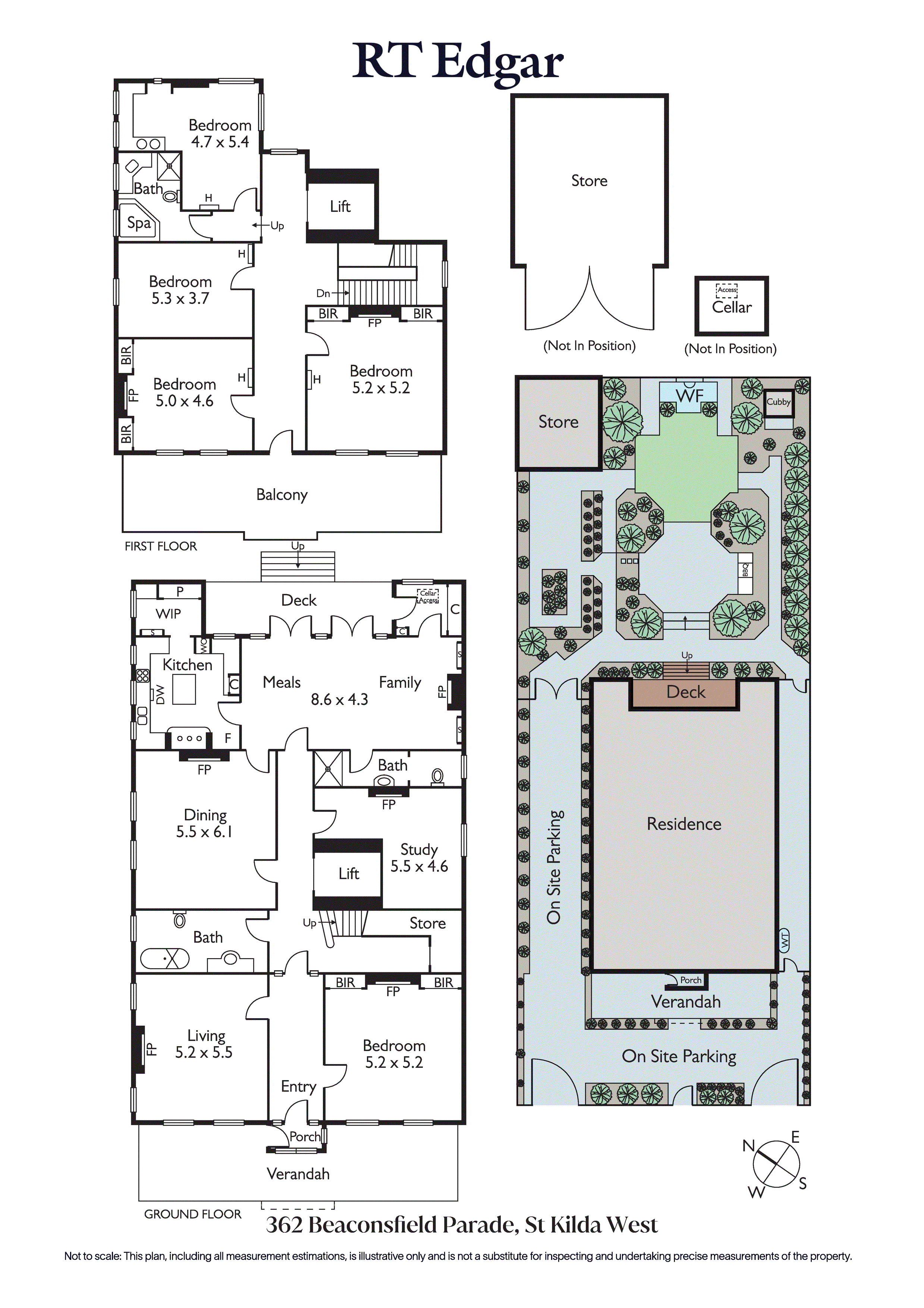 A king-sized main bedroom with water views, plus two bathrooms, is positioned on the ground floor, with the broad staircase, framed by a stunning stained-glass window, leading to four further bedrooms, a third bathroom and a deep terrace balcony with sweeping views over Catani Gardens to the glistening bay beyond. Beautifully presented and appointed with secure, dual-driveway access, parking for five, an underground cellar, ducted and electric heating, garden reticulation, intercom security and automated gates, it sits just steps from the sand, the Royal Melbourne Yacht Club, St Kilda Sea Baths, beachfront dining, elite schools and is only moments from Middle Park Village and the city. A legacy home in one of Australia's most exclusive coastal addresses, this is a generational opportunity, and it is available now.